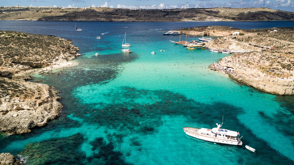 • L’île de Comino, un paradis préservé situé entre Malte et Gozo, où l’on trouve la célèbre Blue Lagoon, aux eaux turquoise et cristallines idéales pour la baignade et la plongée avec masque et tuba.